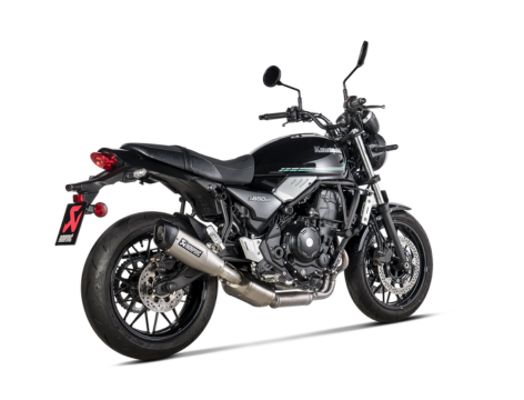Constructed using a high-grade sandblasted and lightweight titanium muffler outer sleeve with a black-coated stainless-steel end cap, combined with a stainless-steel link pipe and pre-muffler, this system is finished with a stylish Akrapovi? monochrome sticker on the muffler. Replacing the exhaust system has a strong impact on the overall appearance of the motorcycle, as well as on its weight and performance. It weighs in at 1.7 kg lighter (a weight saving of 29.2%) compared to the standard stock system, producing an increase in power of 1.1 kW (1.5 hp) at 5,300 rpm and a torque rise of +1.9 Nm at 5,300 rpm when tested on the Akrapovi? in-house dyno against a Z650RS with a standard stock exhaust. Providing an impeccable throttle response allied to a deep Akrapovi? sound, this plug-and-play installation system requires no remapping to the ECU and meets Euro 5 standards.