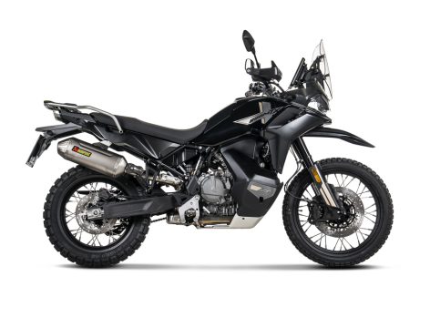 Additional strength has been added to the surface of the muffler through a specially designed profile, which adds improved durability and a sporty look – as seen on rally-raid motorbikes. Race-proven materials reduce weight by 47.4% (2.4 kg) compared to the standard stock exhaust. The exhaust produces a deep and sporty sound from the 799 cc engine. Performance gains of +0.7 kW (+1.0 hp) at 3,500 rpm in power and +2.4 Nm at 3,500 rpm in torque were recorded during testing on the Akrapovič in-house dyno when compared with the standard system.